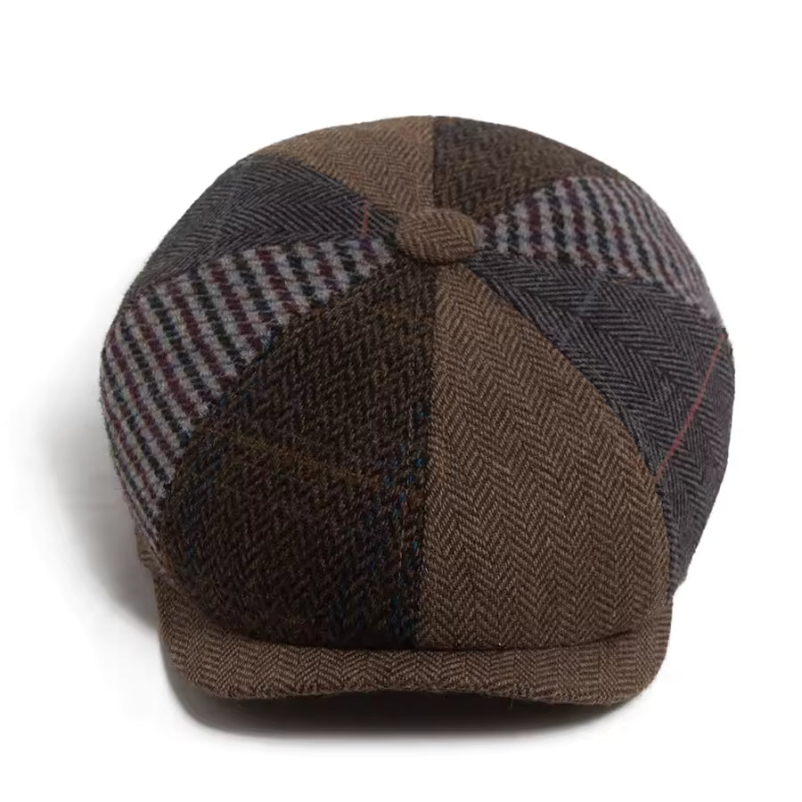 Crafted from a soft wool blend with a classic patchwork design, the Wool Patchwork Cap brings together dependable warmth and a unique vintage look. The structured flat cap shape sits naturally and stays secure, while the smooth interior lining adds comfort for everyday winter wear. Warm, stylish, and easy to pair with seasonal outfits, it is an ideal choice for winter walks, relaxed weekends, and daily outings in colder months.